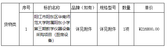 二、采購項(xiàng)目名稱:陽江市陽東區(qū)華南師范大學(xué)附屬陽東小學(xué)第三期教學(xué)儀器設(shè)備采購項(xiàng)目(廚房設(shè)備)