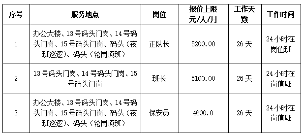 1.項目名稱:陽江市陽江港廣泰隆碼頭有限公司保安服務(wù)采購項目(預(yù)算詢價)