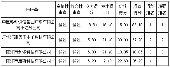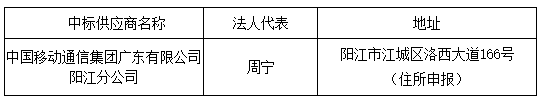投標(biāo)結(jié)果:最終評標(biāo)委員會一致推薦 中國移動通信集團(tuán)廣東有限公司陽江分公司 為中標(biāo)單位,中標(biāo)金額為人民幣 787385.00 元,(大寫金額: 柒拾捌萬柒仟叁佰捌拾伍元整 )。