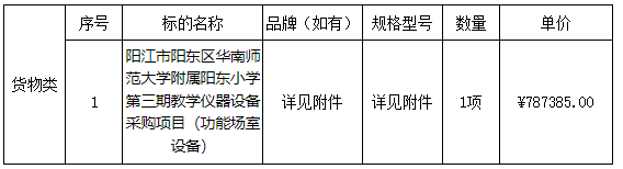 二、采購項目名稱:陽江市陽東區(qū)華南師范大學(xué)附屬陽東小學(xué)第三期教學(xué)儀器設(shè)備采購項目(功能場室設(shè)備)