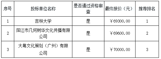 談判結果:最終談判小組一致推薦 吉林大學 為成交單位,成交金額為人民幣 69300.00 元(大寫金額: 陸萬玖仟叁佰元整 )。
