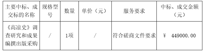 2.項(xiàng)目名稱:《高涼史》調(diào)查研究和成果編撰出版采購項(xiàng)目