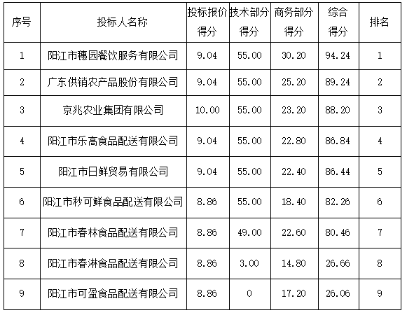 01包組:最終評標(biāo)委員會一致推薦 陽江市穗園餐飲服務(wù)有限公司 為中標(biāo)單位,中標(biāo)折扣率為 98% 。