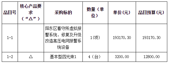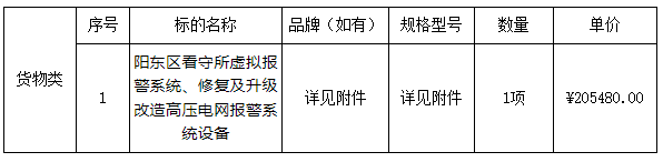二、采購項目名稱:陽東區(qū)看守所虛擬報警系統(tǒng)、修復及升級改造高壓電網(wǎng)報警系統(tǒng)設備項目