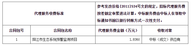 | 1-1 | 其他服務(wù) | 陽江市生態(tài)系統(tǒng)預警監(jiān)測項目 | 按照招標文件要求 | 按照招標文件要求 | 合同簽訂后1年完成項目服務(wù)內(nèi)容(具體監(jiān)測安排按采購人要求實施) | 按照招標文件要求 | 1,420,000.00 |