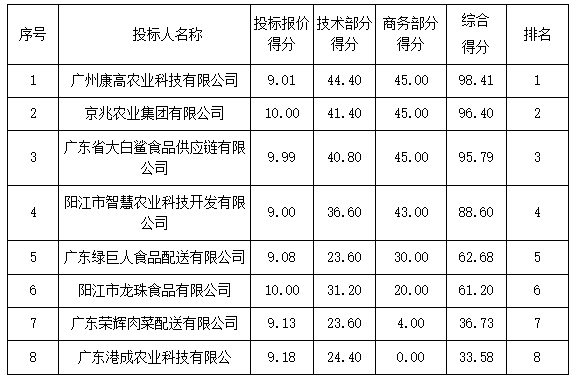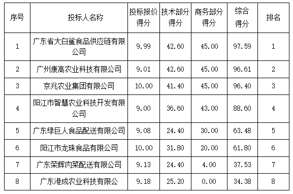03包組:最終評標委員會一致推薦 廣東省大白鯊食品供應(yīng)鏈有限公司 為中標單位,中標折扣率為 95.00% 。