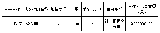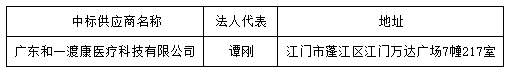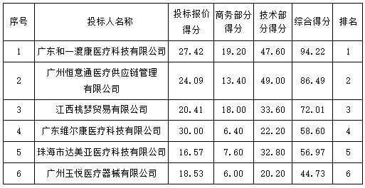 投標(biāo)結(jié)果:最終評(píng)標(biāo)委員會(huì)一致推薦 廣東和一渡康醫(yī)療科技有限公司 為中標(biāo)單位,中標(biāo)金額為人民幣 288800.00 元,(大寫(xiě)金額: 貳拾捌萬(wàn)捌仟捌佰元整 )。