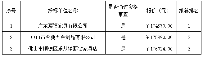 報(bào)價(jià)結(jié)果:最終詢(xún)價(jià)小組一致推薦 廣東藤禧家具有限公司 為成交單位,成交金額為人民幣 174570.00 元(大寫(xiě)金額: 壹拾柒萬(wàn)肆仟伍佰柒拾元整 )。