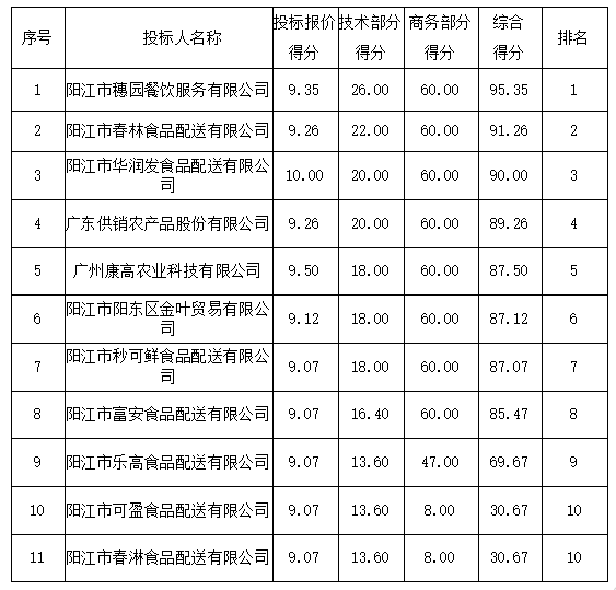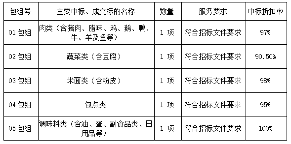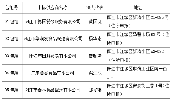 01包組:最終評標(biāo)委員會一致推薦 陽江市穗園餐飲服務(wù)有限公司 為中標(biāo)單位,中標(biāo)折扣率為 97% 。