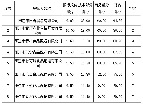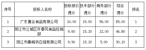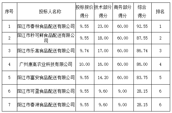 注:陽江市山海農(nóng)產(chǎn)品有限公司投標(biāo)文件的服務(wù)期未響應(yīng)招標(biāo)文件要求,符合性審查不通過。
