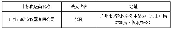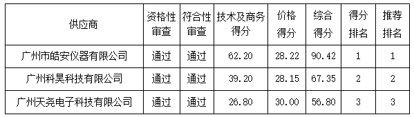 投標(biāo)結(jié)果:最終評標(biāo)委員會一致推薦 廣州市皓安儀器有限公司 為中標(biāo)單位,中標(biāo)金額為人民幣 839800.00 元,(大寫金額: 捌拾叁萬玖仟捌佰元整 )。
