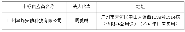 投標結(jié)果:最終評標委員會一致推薦 廣州聿峰安防科技有限公司 為中標單位,中標金額為人民幣 538400.00 元,(大寫金額: 伍拾叁萬捌仟肆佰元整 )。