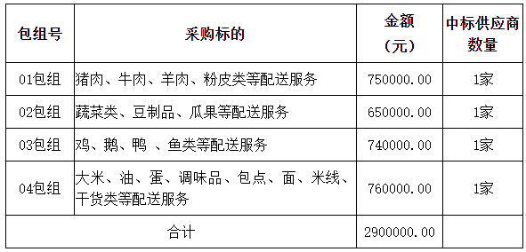 04包組:最終評標委員會一致推薦 陽江市喜家廚食品供應(yīng)有限公司 為中標單位,中標折扣率為 97% 。