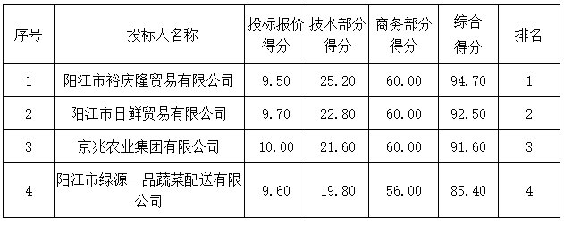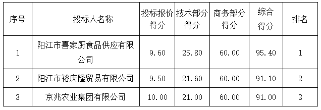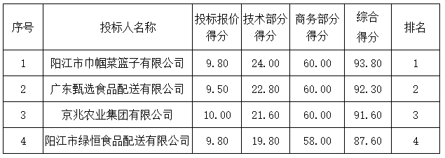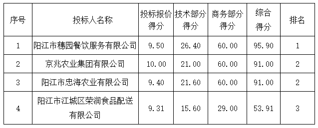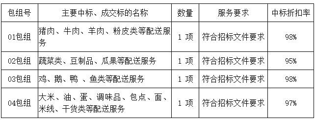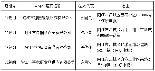 01包組:最終評標委員會一致推薦 陽江市穗園餐飲服務(wù)有限公司 為中標單位,中標折扣率為 98% 。
